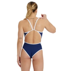 The Arena Multi Camo challenge back swimsuit is bright and eye catching whilst still being feminine. The blue of the trim extends through to the straps and the back of the suit.  The challenge back is an open style with thin feminine straps. This style allows for maximum freedom of shoulder movement making it an ideal choice for regular training sessions. The suit is fully lined in a co-ordinating pink and has a high cut leg.