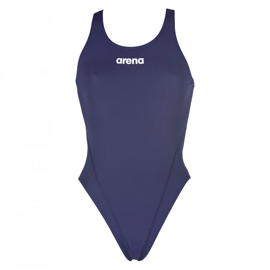 The navy blue Arena ‘Solid Tech’ is a high leg swimsuit with soft with easy-dry properties. It uses Arena’s Max Life material technology which is chlorine and sunlight resistant and is made to last. This makes it perfect for regular swim training and / or racing.