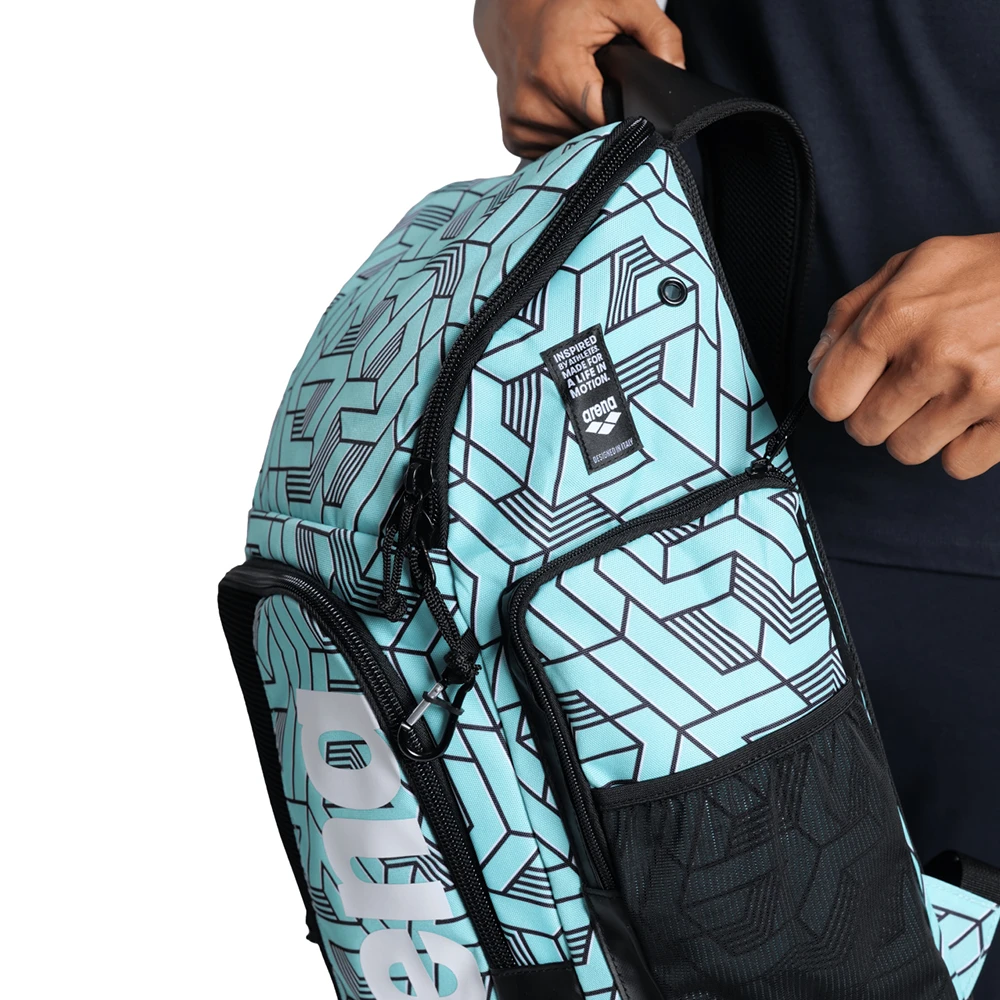 The Arena Spiky III Backpack – Escape is a top loading rucksack which is specifically designed for athletes and competitive swimmers. It provides space for all accessories, wet gear etc. It features a light turquoise and grey design with stylish black zips.